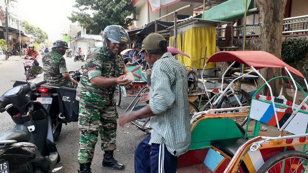 Jumat berkah biasa dilakukan para Babinsa Koramil 0827/01 Kota Sumenep dengan cara berbagi nasi kotak kepada warga tak mampu yang sedang mencari nafkah.